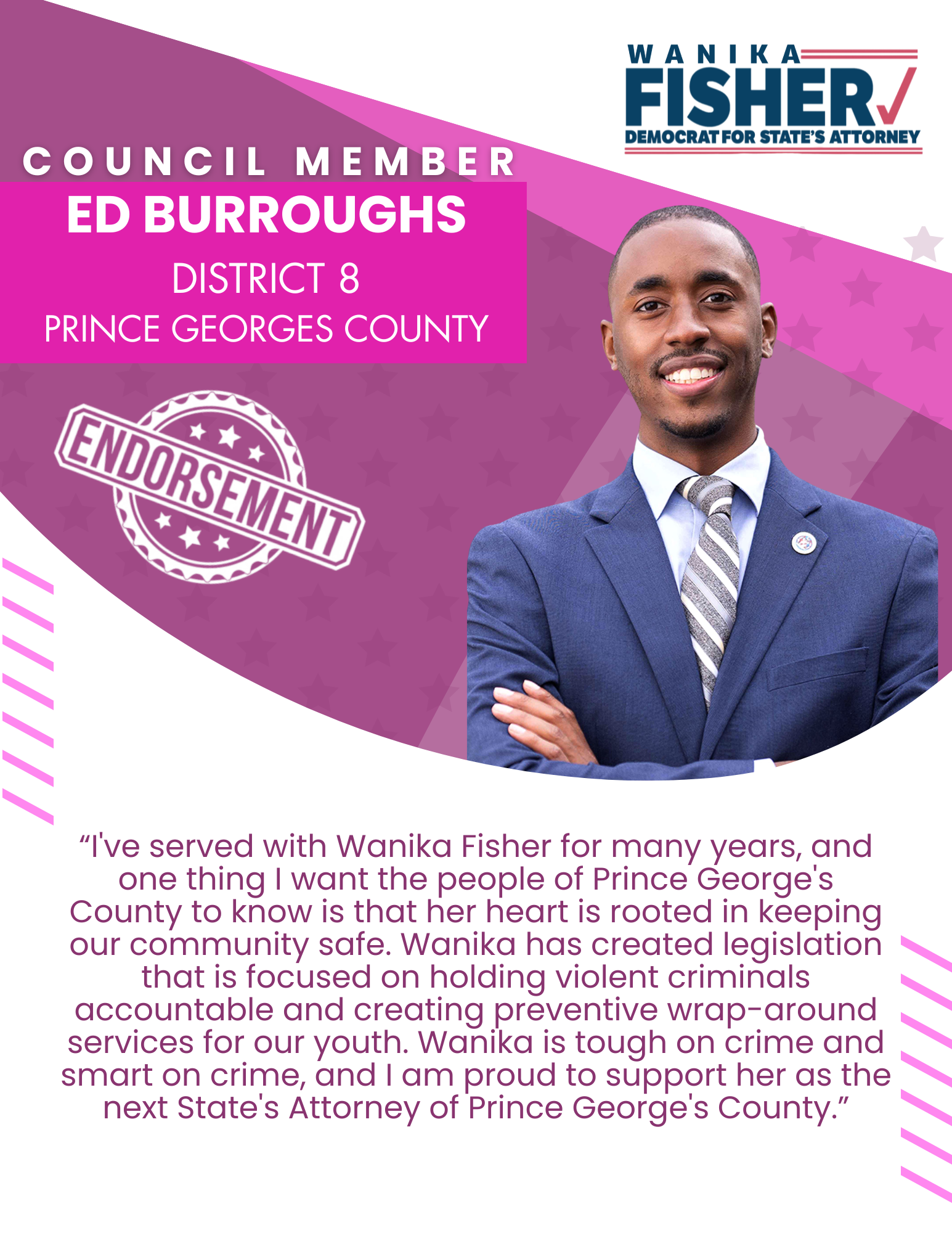 Wanika Fisher has served and worked toward the safety of Prince George’s in several capacities: